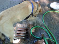 Same with these leaves and the daisy.  I like the leaves for their texture and shadow.  We were headed toward the off leash area, where Jack proceeded to make sure all the “swimming holes” were empty.  He does not do this with his dish at home, but he will do it at the park as long as some poor sucker will keep filling it up.