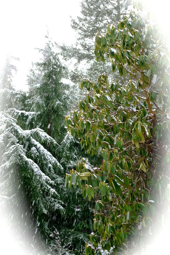 A few little fun things from the snow today. I was trying to capture the snowflakes – no doubt I missed a setting somewhere. Also fiddled a bit in iPhoto.