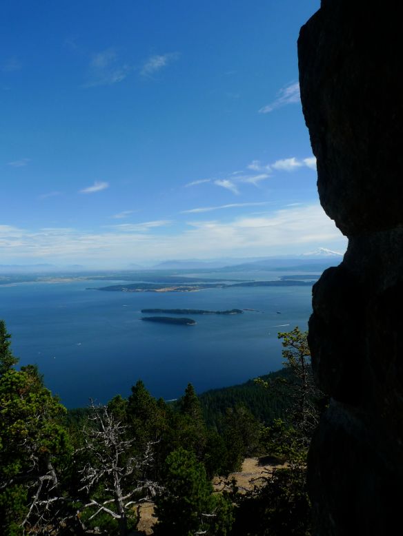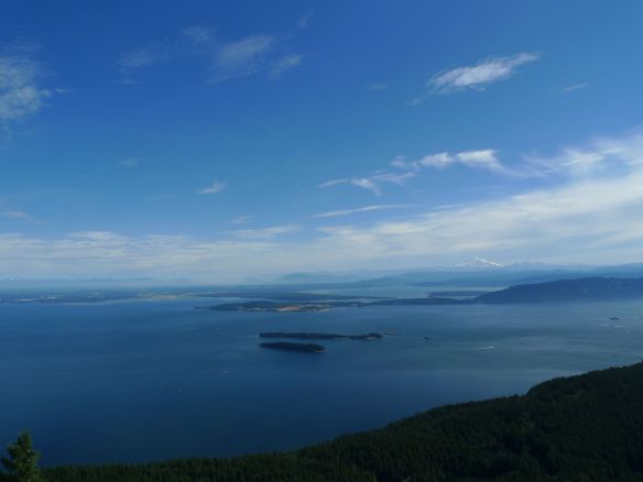 For the first time this year, we took a day trip over to Orcas Island to check out Moran State Park. That island is much larger than Lopez and feels more mountain-y. In Moran State Park you can drive up to Mt. Constitution, where there is a tower you can climb and really spectacular views. REALLY spectacular.