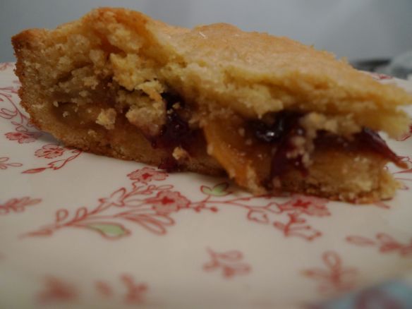 One of my favorite things about this time of year is the good stuff to make and eat (this week’s wacky warm weather notwithstanding). So I got out Baking – From my Home to Yours, by Dorie Greenspan, to see what I could do with these guys. I am a sucker for anything involving apples, since it usually also involves ginger, cinnamon and nutmeg. There was quite a few options but this one had me at “shortbread”. The recipe as written uses a cramberry jam filling, but in the notes she suggests apples as an alternative. I made a a few other tweaks as noted below and this is what came out.