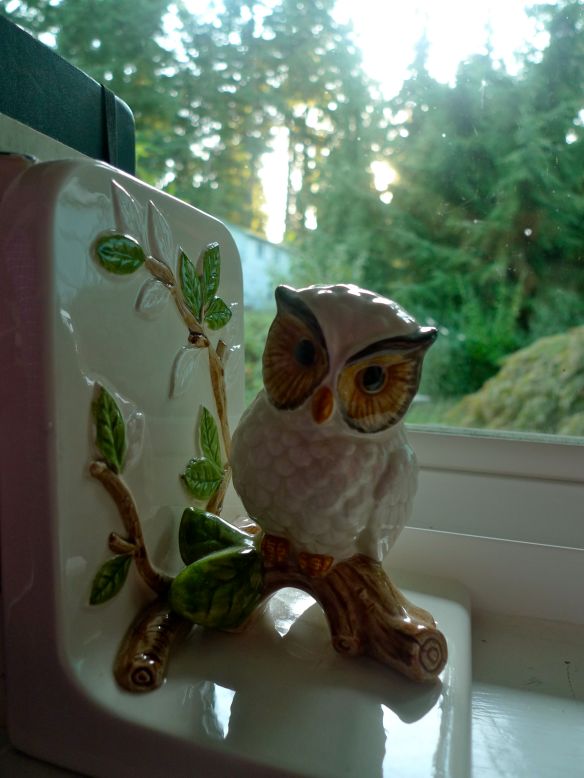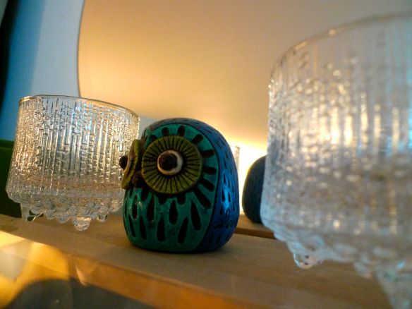 I have an (some would say) unhealthy affection for tschockes.  Sylvia Hood owl from the Rose Bowl flea market, glasses from Jay for our 20th.  Love.