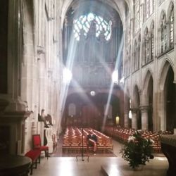 I have two stories I tell people when they ask. The first happened when Fred and I took the Eurostar to London for the day. We were following the most excellent map plotted for us by Madame Professor, and found ourselves wandering through Parliament Square. We’d stopped next to a bus map next to the Parliament building, trying to find a pub. I hear a voice behind me asking if we need directions. I turn to find an elderly lady wearing a turquoise suit, thick black stockings and what I believe they call “trainers” there – big white tennis shoes. She’s carrying a ratty black nylon briefcase and a cane. I tell her we are looking for this pub and she says in a very British accent that she doesn’t know where THAT pub is but if we continue on the road we’ll come to others. Then she turns to leave.