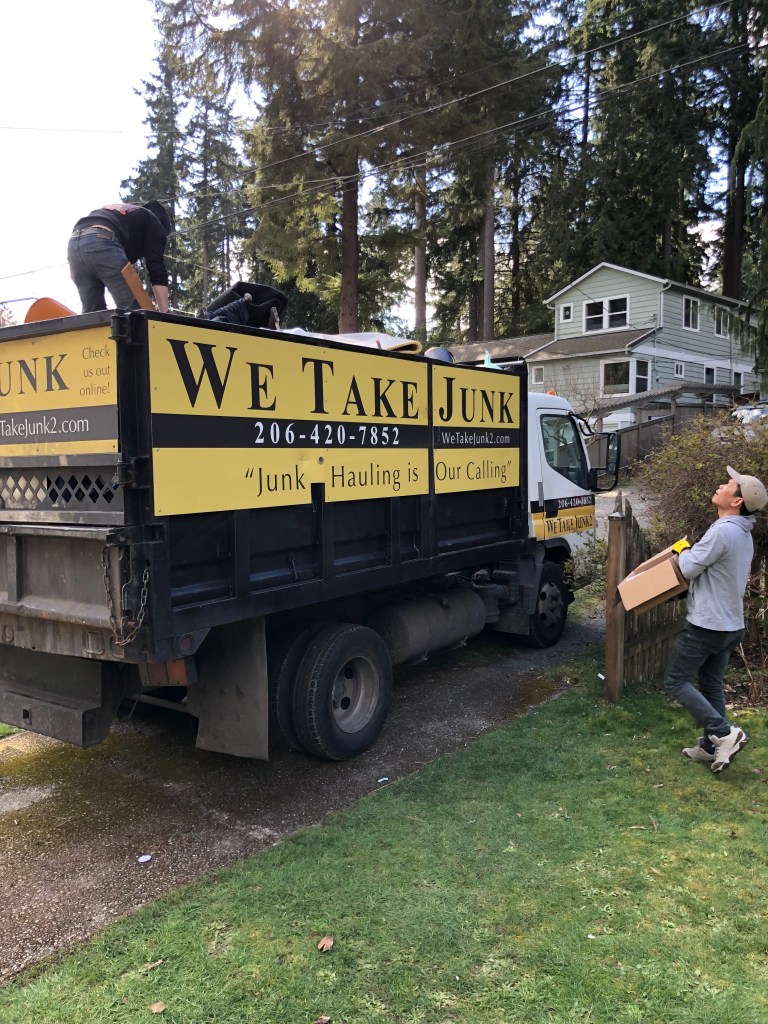A few hours later and the house was mostly empty, full of echoes and soooo dingey without stuff! Now we had to prep what was left for Kevin and his crew to take the next day. There was still a section in the garage we hadn’t gotten to, mostly tools and odds and ends, but by this time we were SO OVER IT. We put more stuff out for the taking – one guy came by and he actually came in the garage and cleaned out a bunch of tools! Win win! It felt good knowing that so much stuff went to new loving homes. The rest…