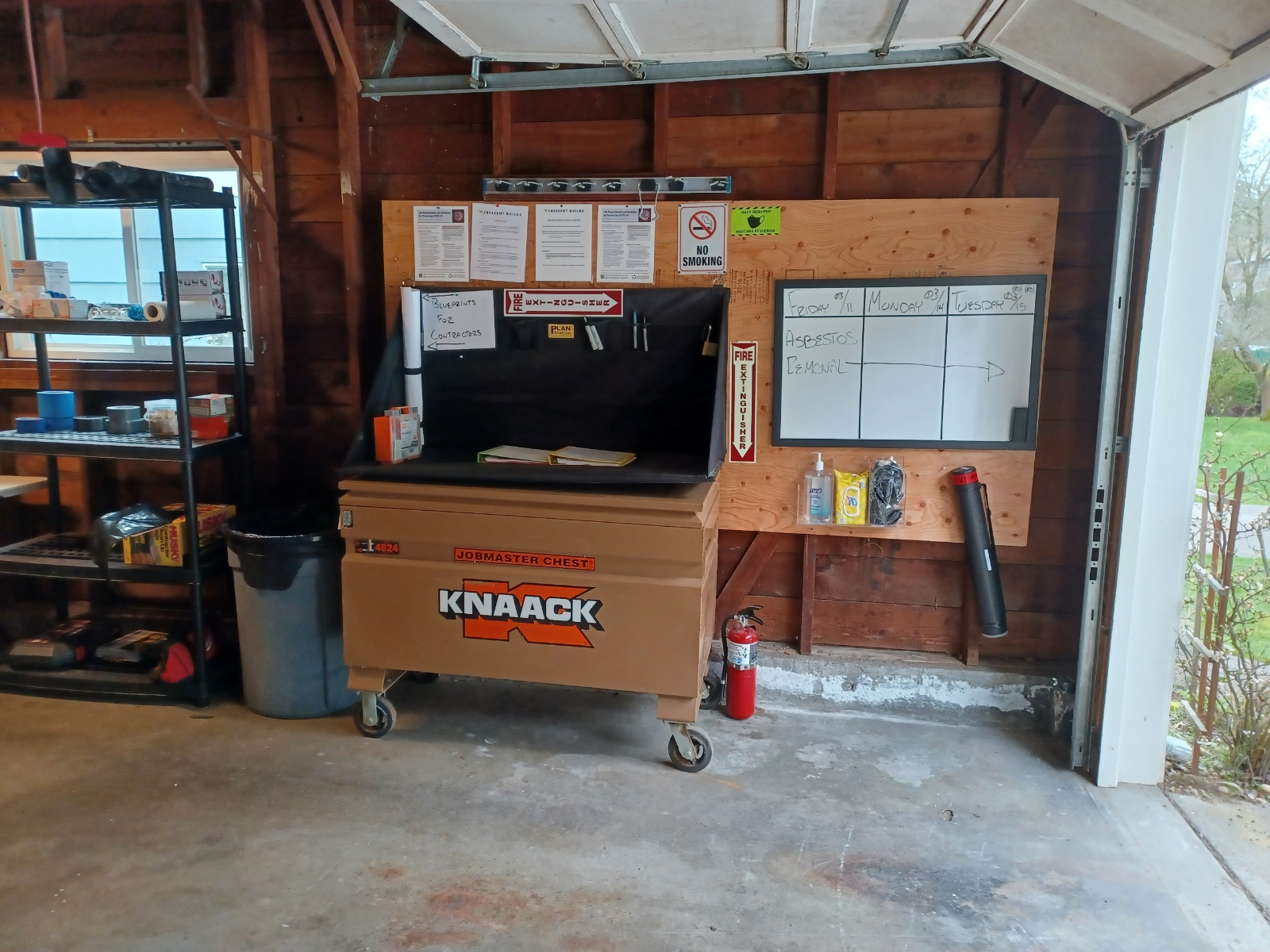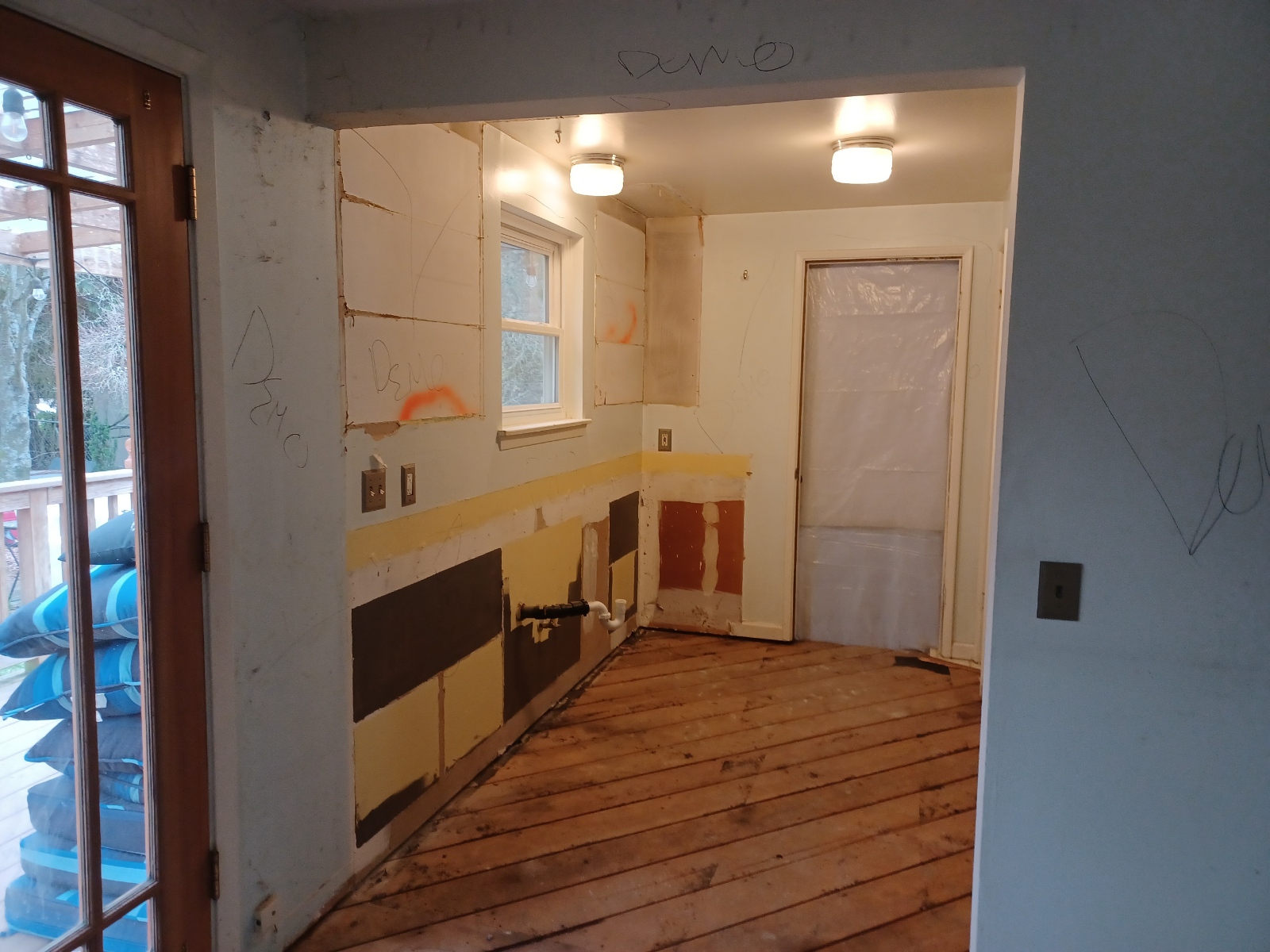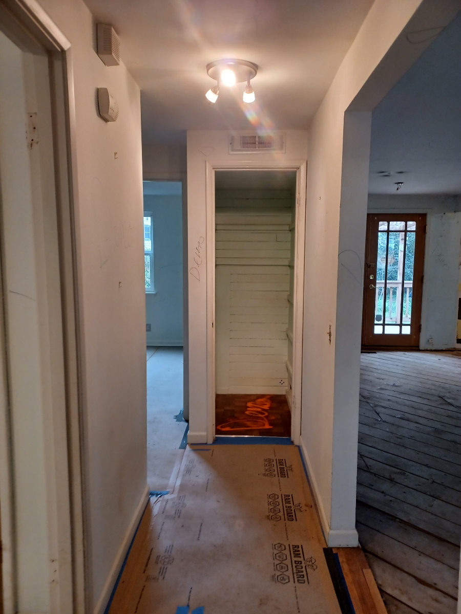 We got to have our first weekly status Teams call (and the first, and hopefully LAST, big change order, thanks to asbestos work and opting to have solid core doors inside. Apparently doors have gone up in price – it was a shock but we think it will be worth it in the long run. Asbestos was a little bit of blessing in disguise – since the walls had to come out, we will get insulation in the walls and the electrical work will be a lot easier to access.