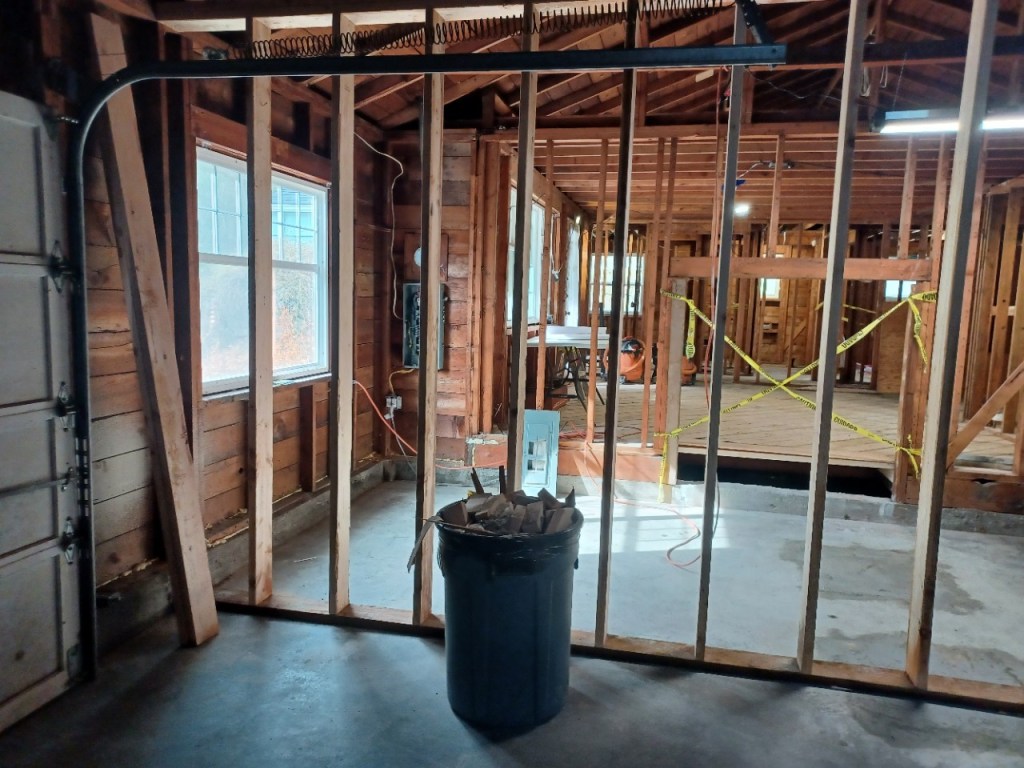 New garage framing, viewed from the back of the garage – the new mudroom.