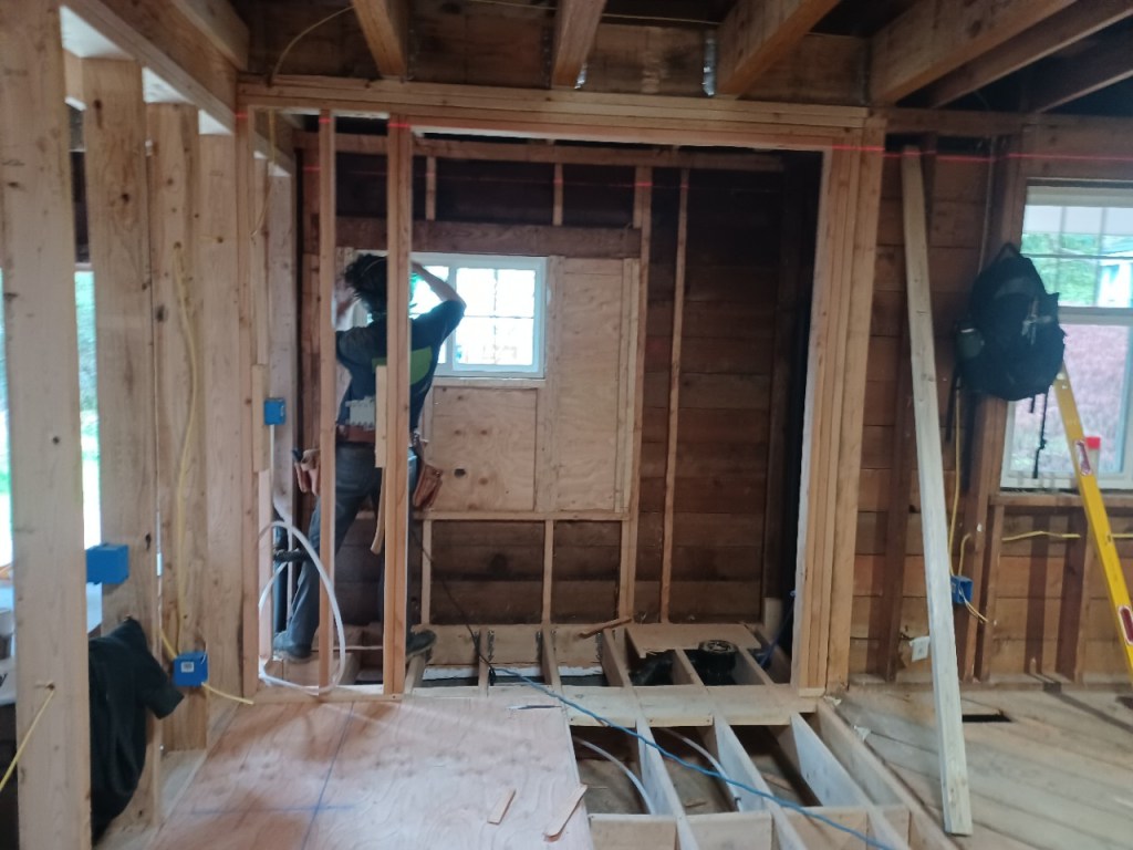 We’ve passed inspections for plumbing, framing and electrical. Insulation started last week, so next will be insulation and cover inspections, I believe. This week, drywall starts! It will be so strange to see it with walls and white again.