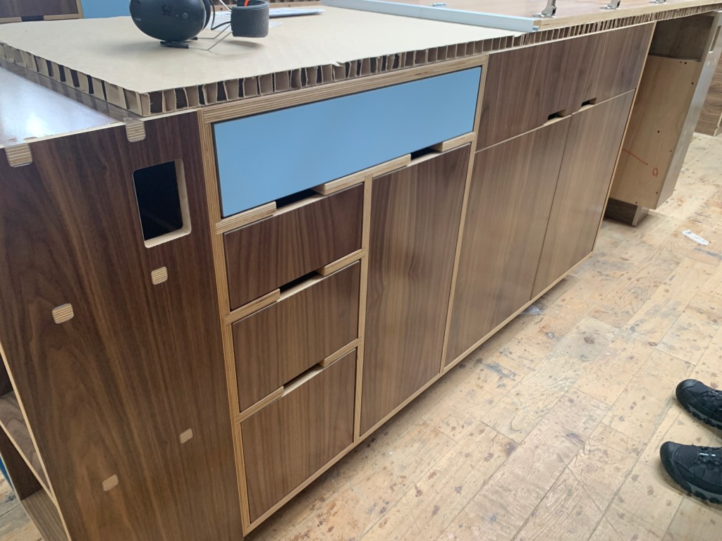 BUT the real fun last week was something I’ve been looking forward to since this whole thing started! Our cabinets are being made by Kerf, as I’ve mentioned before. Since they’re local, I was hoping we could come down and check them out in person – when we’d toured before we started planning, there were finished cabinets waiting to be shipped out.